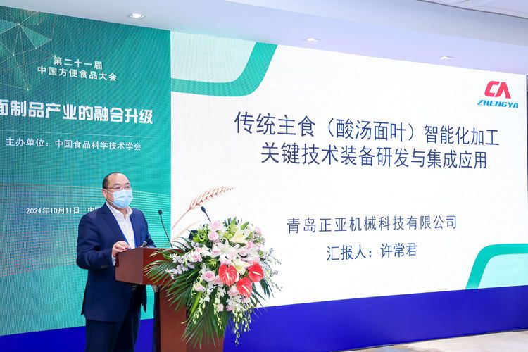在10月11日“面制品產(chǎn)業(yè)的融合升級”專題會議中我司總經(jīng)理許常君先生以“智能化加工關(guān)鍵技術(shù)裝備研發(fā)與集成應(yīng)用”的主題分享了我司在研發(fā)傳統(tǒng)地方特色美食(酸湯面葉)工業(yè)化生產(chǎn)過程中的創(chuàng)新與突破。