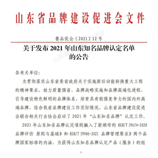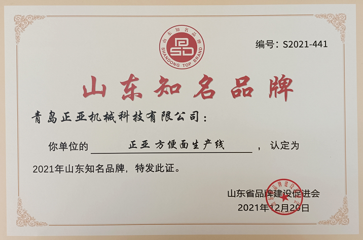 山東省品牌建設(shè)促進(jìn)會(英文簡稱SDCBD),是山東省品牌綜合管理機(jī)構(gòu)。為助力我省質(zhì)量強(qiáng)省及品牌戰(zhàn)略實(shí)施和品牌高端化進(jìn)程,引導(dǎo)建設(shè)特色鮮明的品牌體系,培養(yǎng)具有較強(qiáng)競爭力的高端品牌,結(jié)合我省品牌建設(shè)實(shí)際情況,山東省品牌建設(shè)促進(jìn)會開啟2021年度“山東知名品牌”認(rèn)定工作。此次品牌認(rèn)定依據(jù)融入了新頒布的《GB/T 39654-2020品牌評價(jià)原則與基礎(chǔ) 》和《GB/T 39906-2021品牌管理要求》兩個(gè)品牌標(biāo)準(zhǔn)的內(nèi)涵,為獲得山東省知名品牌認(rèn)定產(chǎn)品(或服務(wù))的組織取得更高的品牌榮譽(yù)奠定了基礎(chǔ)。我公司能最終取得認(rèn)定,說明我公司 “方便面生產(chǎn)線”獲得了山東省及行業(yè)的支持與認(rèn)可,同時(shí),積極推動了公司自主創(chuàng)新、自動研發(fā)的進(jìn)程。