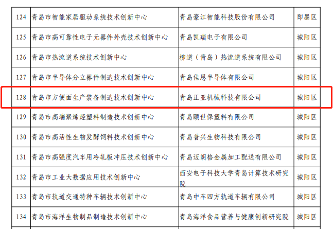 青島正亞機械入選青島市2021年度技術創(chuàng)新中心