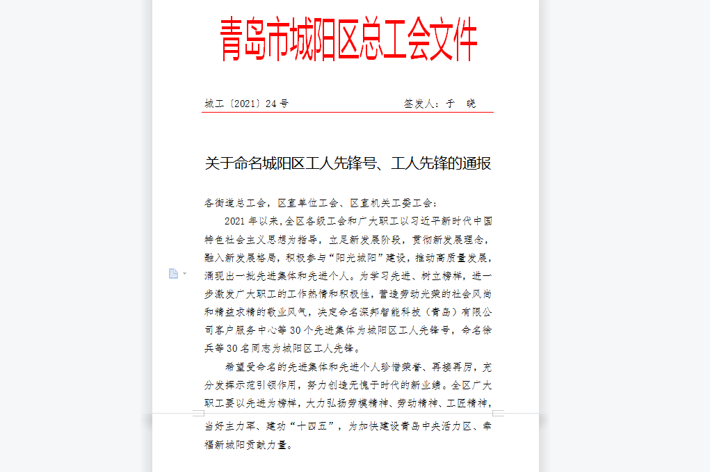 “城陽(yáng)區(qū)工人先鋒號(hào)”由城陽(yáng)區(qū)總工會(huì)授予,是以創(chuàng)一流工作、一流服務(wù)、一流業(yè)績(jī)、一流團(tuán)隊(duì)為核心的榮譽(yù)稱號(hào)。開(kāi)展創(chuàng)建“工人先鋒號(hào)”活動(dòng),是推動(dòng)科學(xué)發(fā)展、實(shí)現(xiàn)共建共享和諧社會(huì)的重要舉措,也是不斷發(fā)展工人階級(jí)先進(jìn)性、發(fā)揮工人階級(jí)主力軍作用的迫切要求。該活動(dòng)是激發(fā)職工工作熱情和創(chuàng)造活力、展示工人階級(jí)先進(jìn)性的一種有效形式,是職工群眾和基層工會(huì)的一個(gè)創(chuàng)舉,有利于增強(qiáng)職工的使命感和責(zé)任感,激勵(lì)廣大職工不斷提高學(xué)習(xí)能力、創(chuàng)新能力、競(jìng)爭(zhēng)能力、創(chuàng)業(yè)能力,加快知識(shí)化進(jìn)程,不斷增強(qiáng)主動(dòng)性、發(fā)揮創(chuàng)造性、發(fā)展先進(jìn)性。